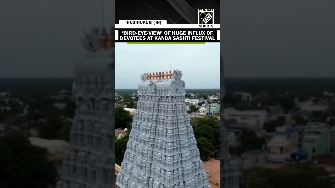 #ANINews Aerial view captures large gathering of devotees at Subramania Swamy Temple on Kanda Sashti festival