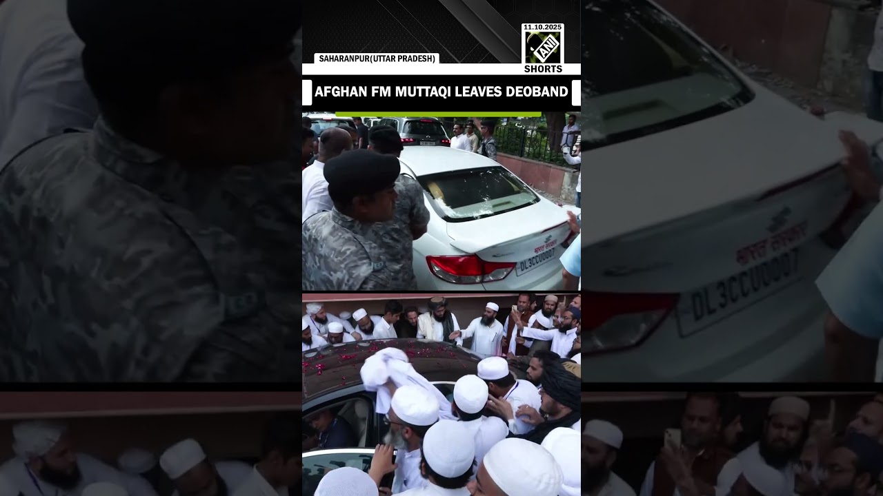 Afghanistan FM Amir Muttaqi leaves from Darul Ulum Deoband as people throng area for a glimpse