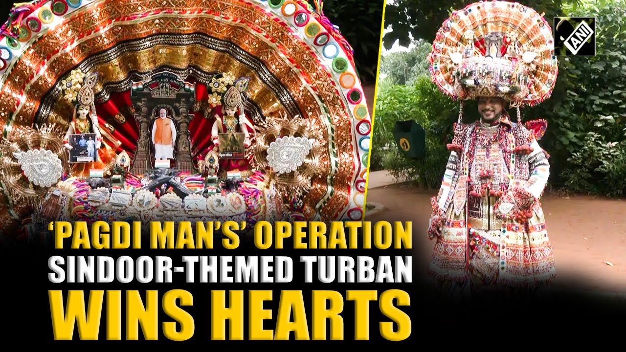 #ANINews Ahmedabad’s ‘pagdi man’ Anuj Mudliar creates 3 kg Operation Sindoor-themed turban for Navratri