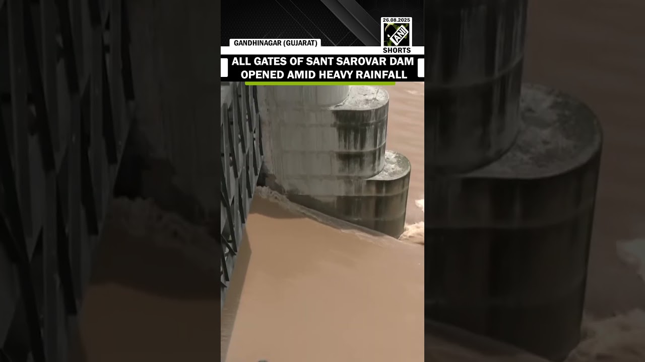 #ANINews All gates of Sant Sarovar Dam opened in Gandhinagar amid heavy rainfall