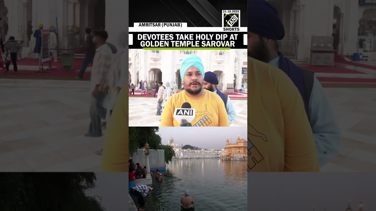 #ANINews Amritsar: Devotees take holy dip at Golden Temple Sarovar