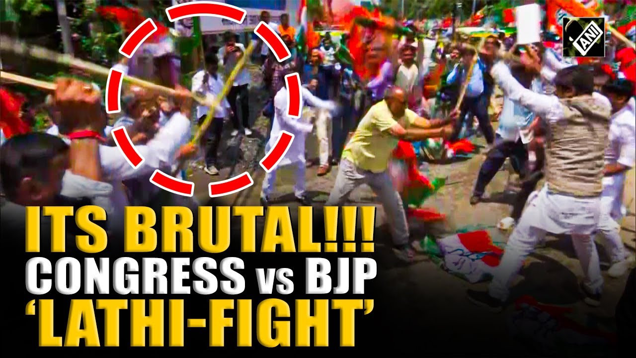#ANINews Caught on Cam: ‘Lathis’, stone pelting between BJP-Congress workers; Chaos in Patna