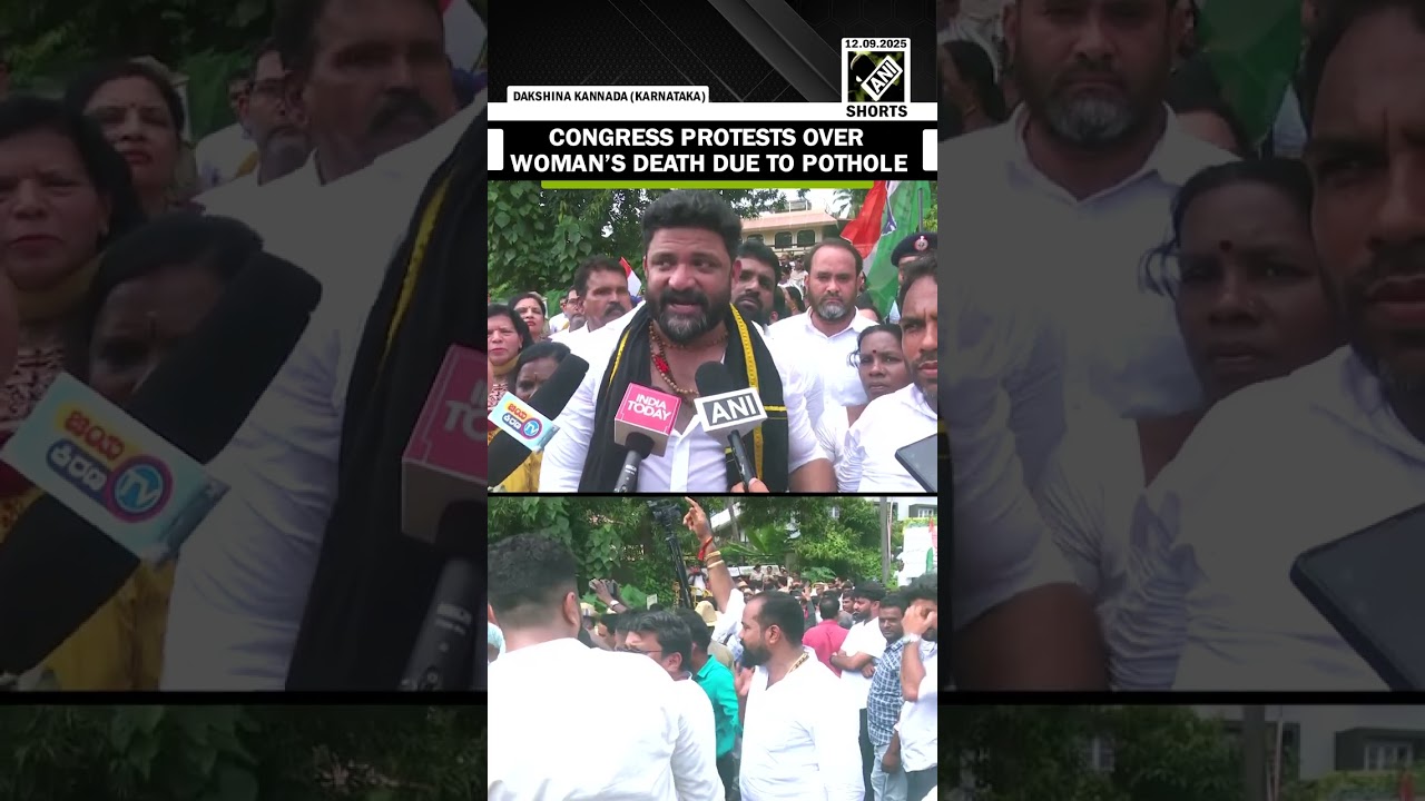 #ANINews Congress holds protest against death of woman due to pothole in Dakshina Kannada