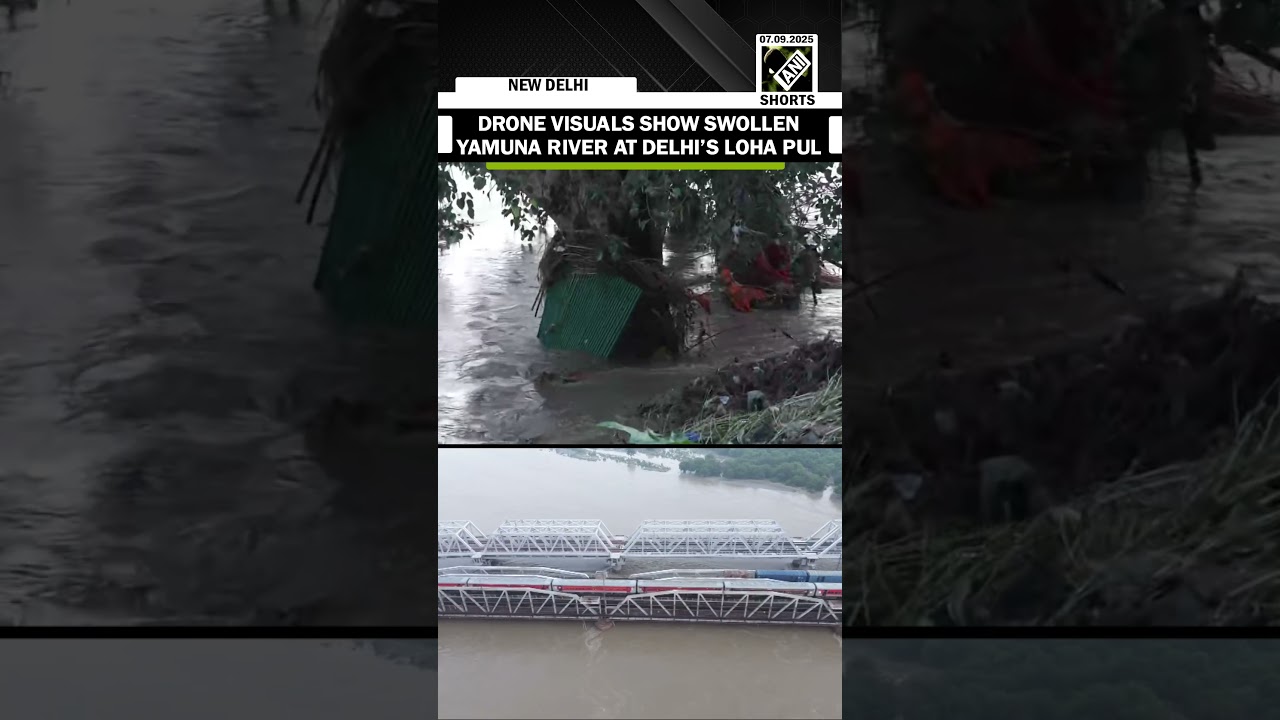 #ANINews Delhi Flood: Drone visuals show swollen Yamuna river at Delhi’s Loha Pul