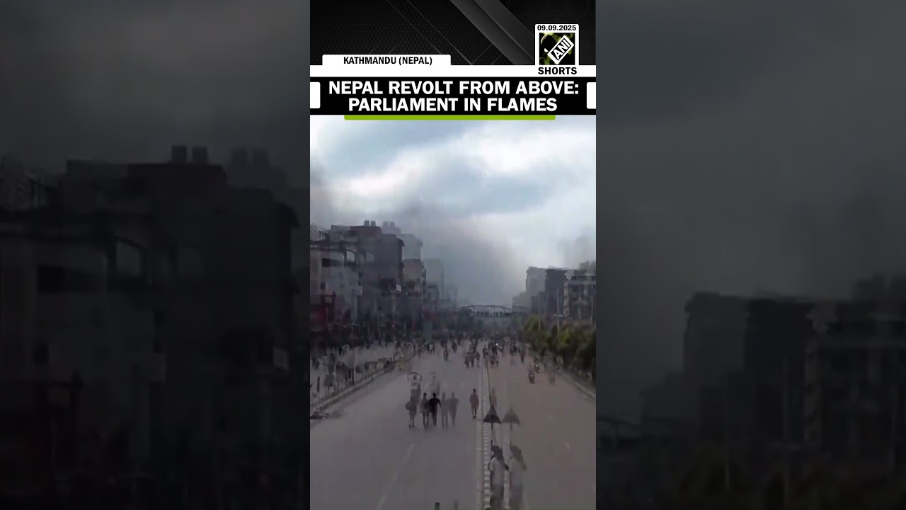 #ANINews Drone Captures Massive Gen Z Protests, Smoke Billowing at Nepal Parliament After PM Oli Resign
