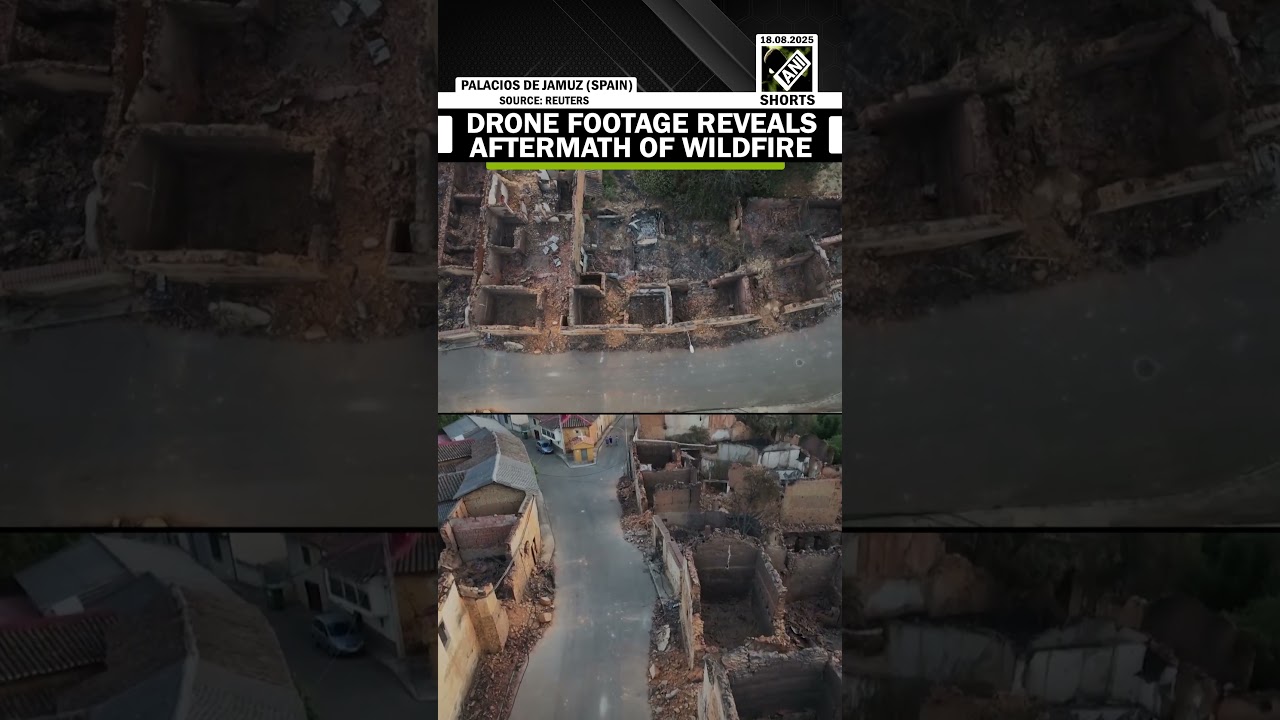 #ANINews Drone footage shows damaged building & Charred land of Spain’s Palacios De Jamuz after wildfires