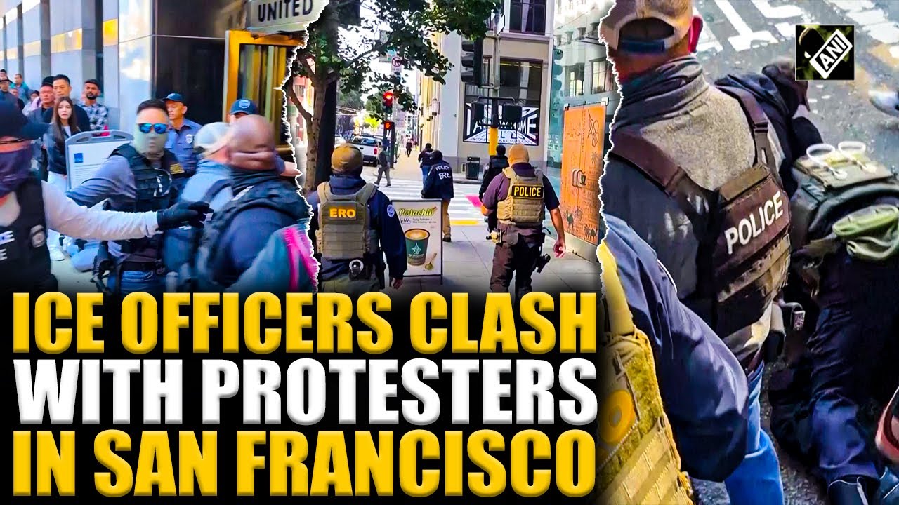 #ANINews ICE officers clash with protesters in San Francisco, one detained after pepper spray used