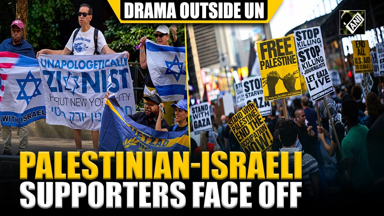 #ANINews Israeli, Palestinian supporters face off outside the United Nations building in New York