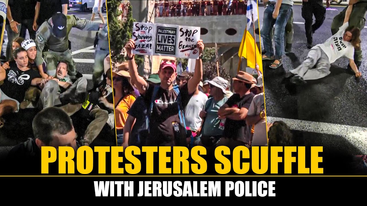Israeli protesters blocking Jerusalem road scuffle with police, protesters demanding to end war