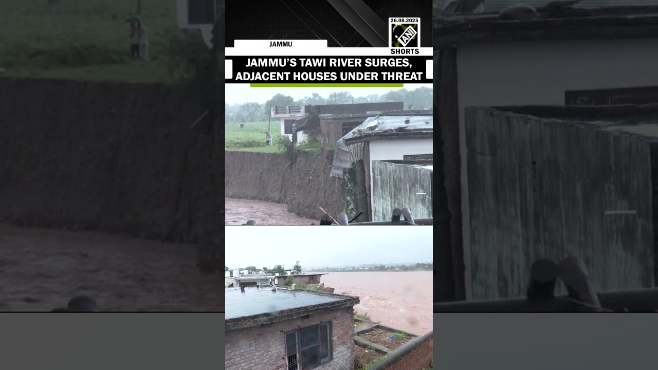 #ANINews Jammu’s Tawi river surges eroding banks, adjacent houses under threat