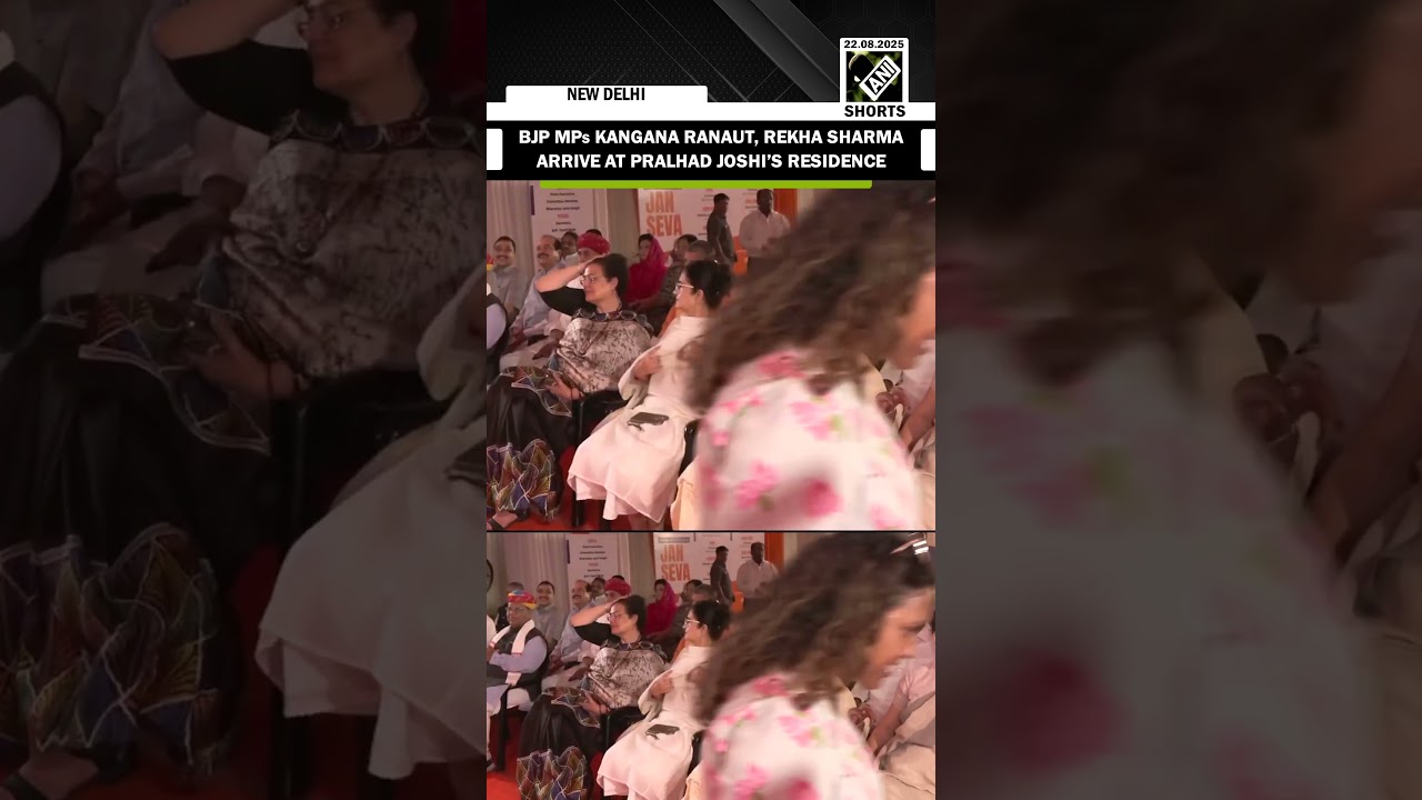 #ANINews Kangana Ranaut, Rekha Sharma arrive at Pralhad Joshi’s residence