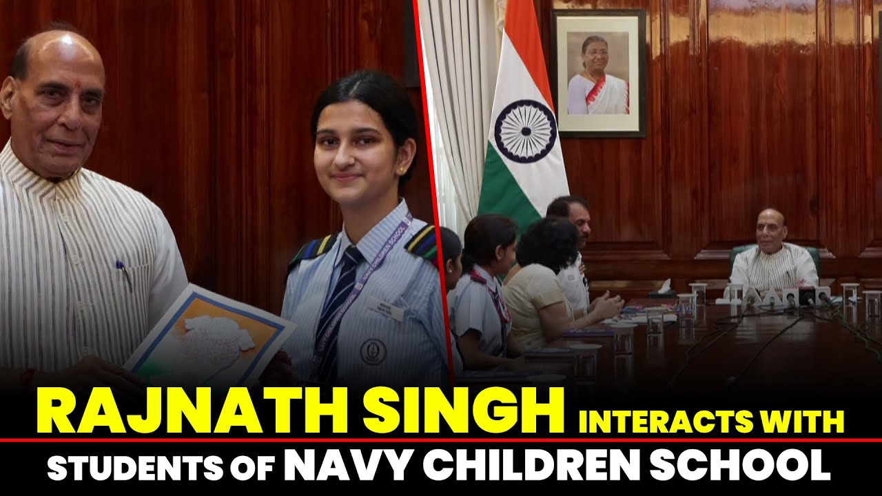LIVE: RM Rajnath Singh interacts with students of Navy Children School at South Block, Delhi