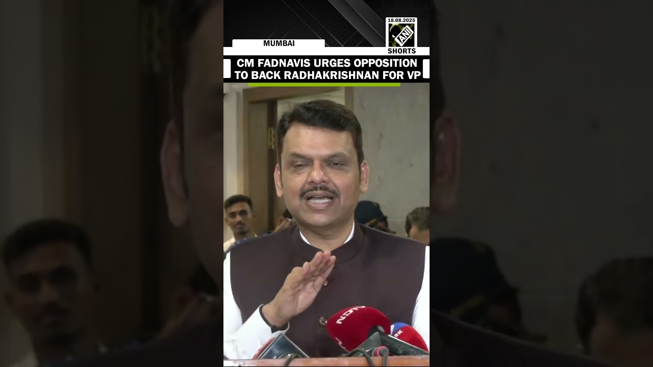 #ANINews Maharashtra CM Devendra Fadnavis urges Opposition leader to back CP RadhaKrishnan for VP post