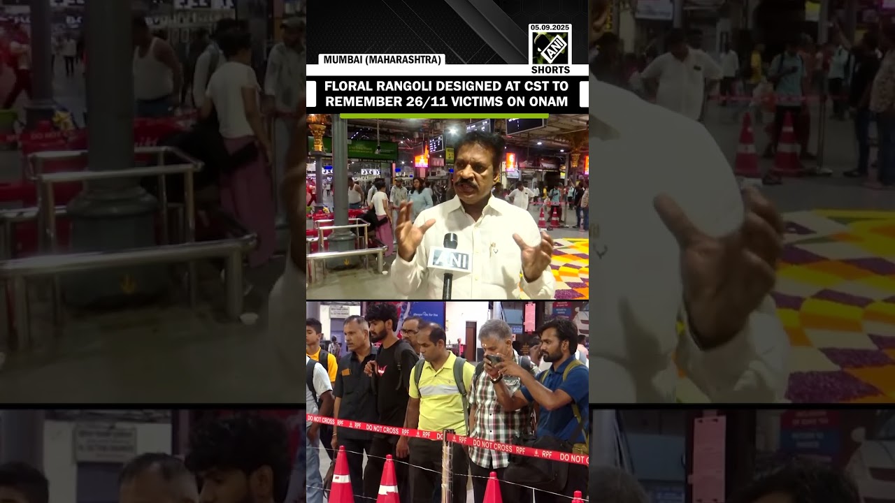 #ANINews Mumbai: Onam Pookalam floral rangoli created during Onam festival at CST to remember 26/11 victims