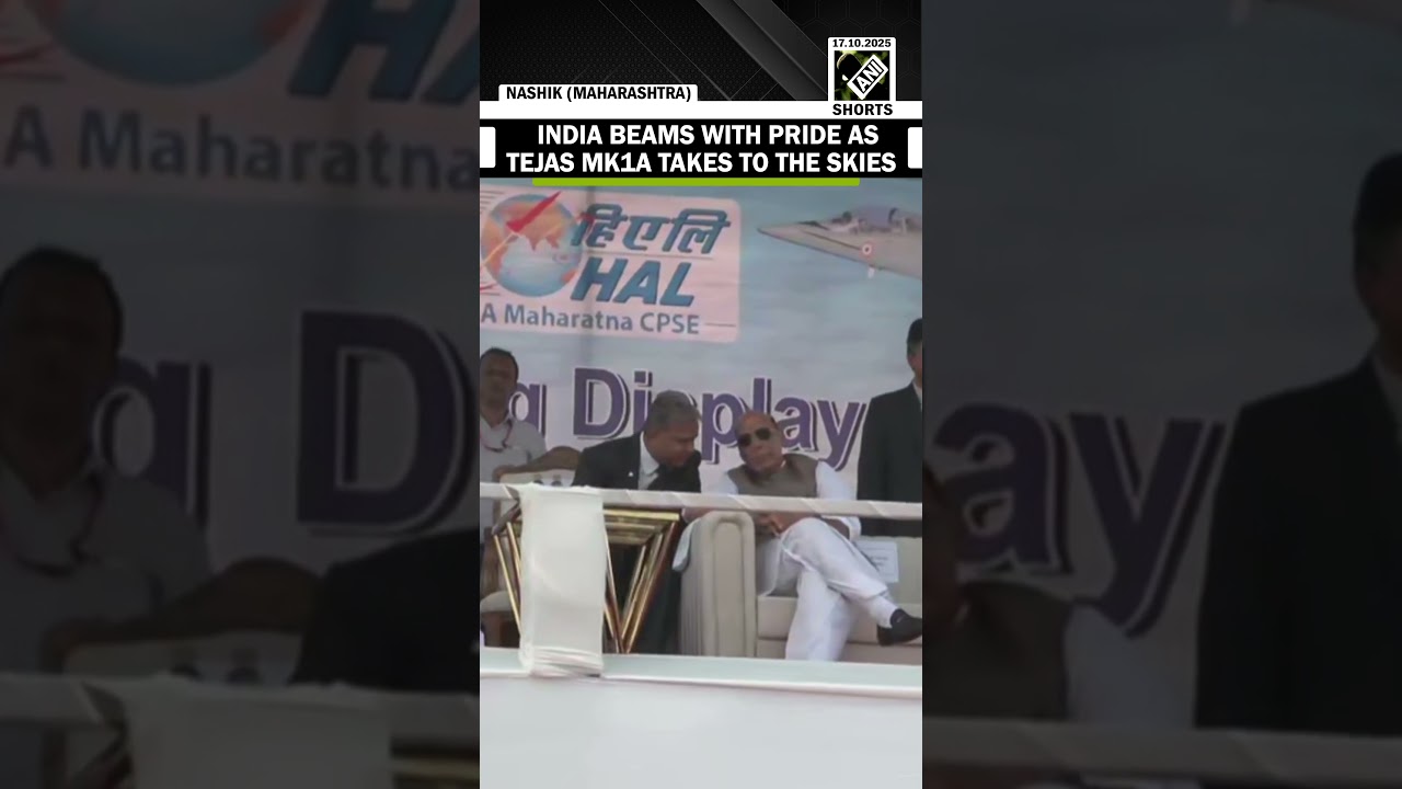 #ANINews Nashik: Tejas Mk1A fighter jet takes to the skies, Rajnath Singh witnesses key defence events