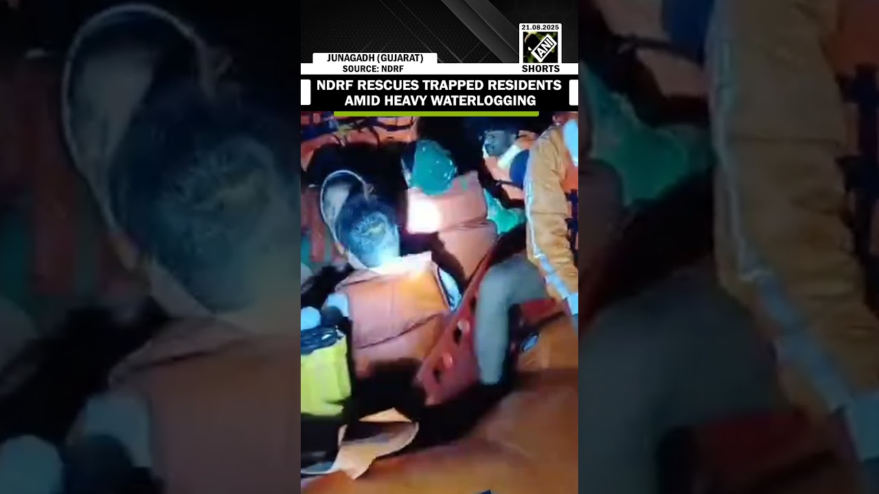 #ANINews NDRF Saves residents from flooded home amid Heavy Waterlogging in Gujarat’s Vanthli Taluka