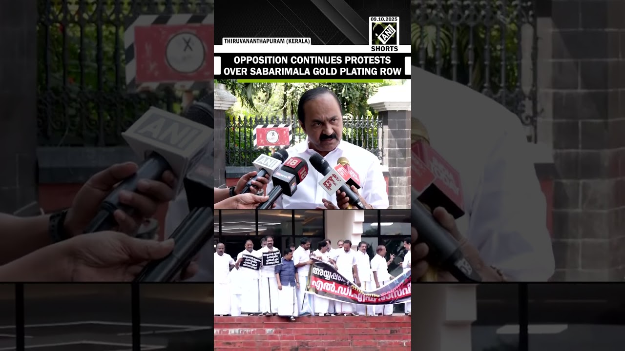 #ANINews Opposition continues their protests in Thiruvananthapuram over Sabarimala gold plating row