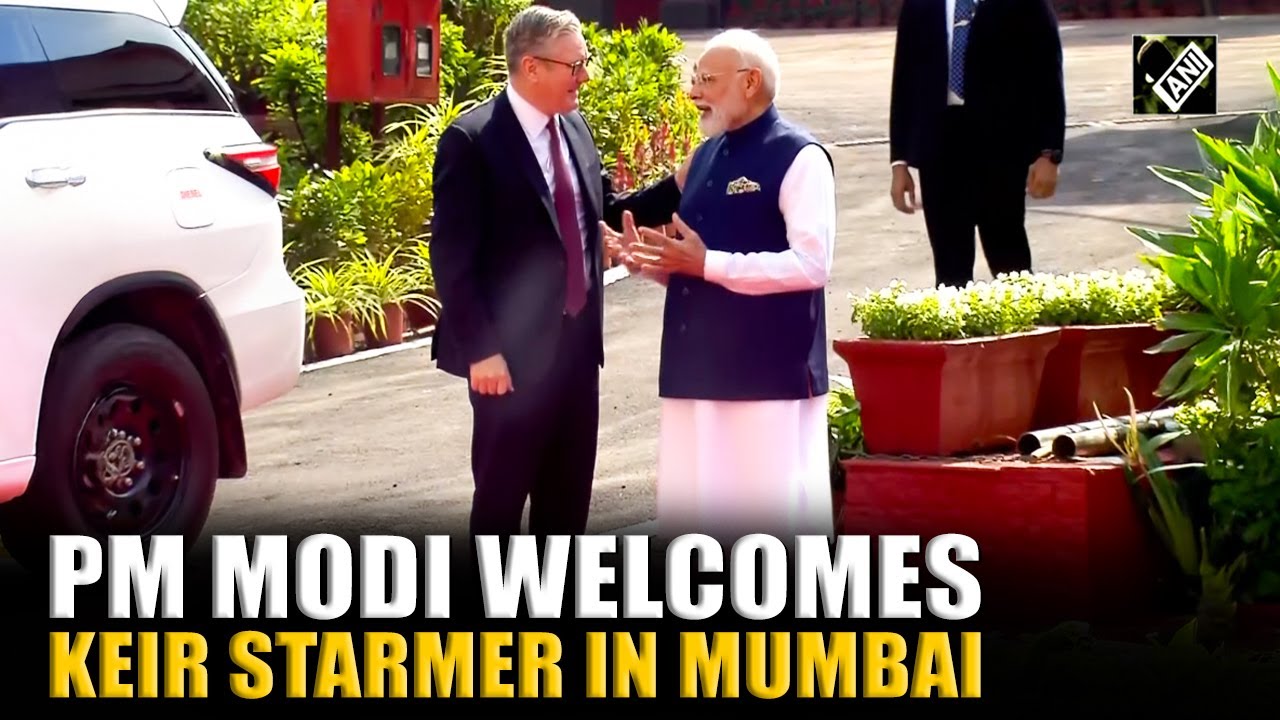 PM Narendra Modi welcomes UK PM Keir Starmer to Raj Bhavan in Mumbai, as the two leaders meet here.