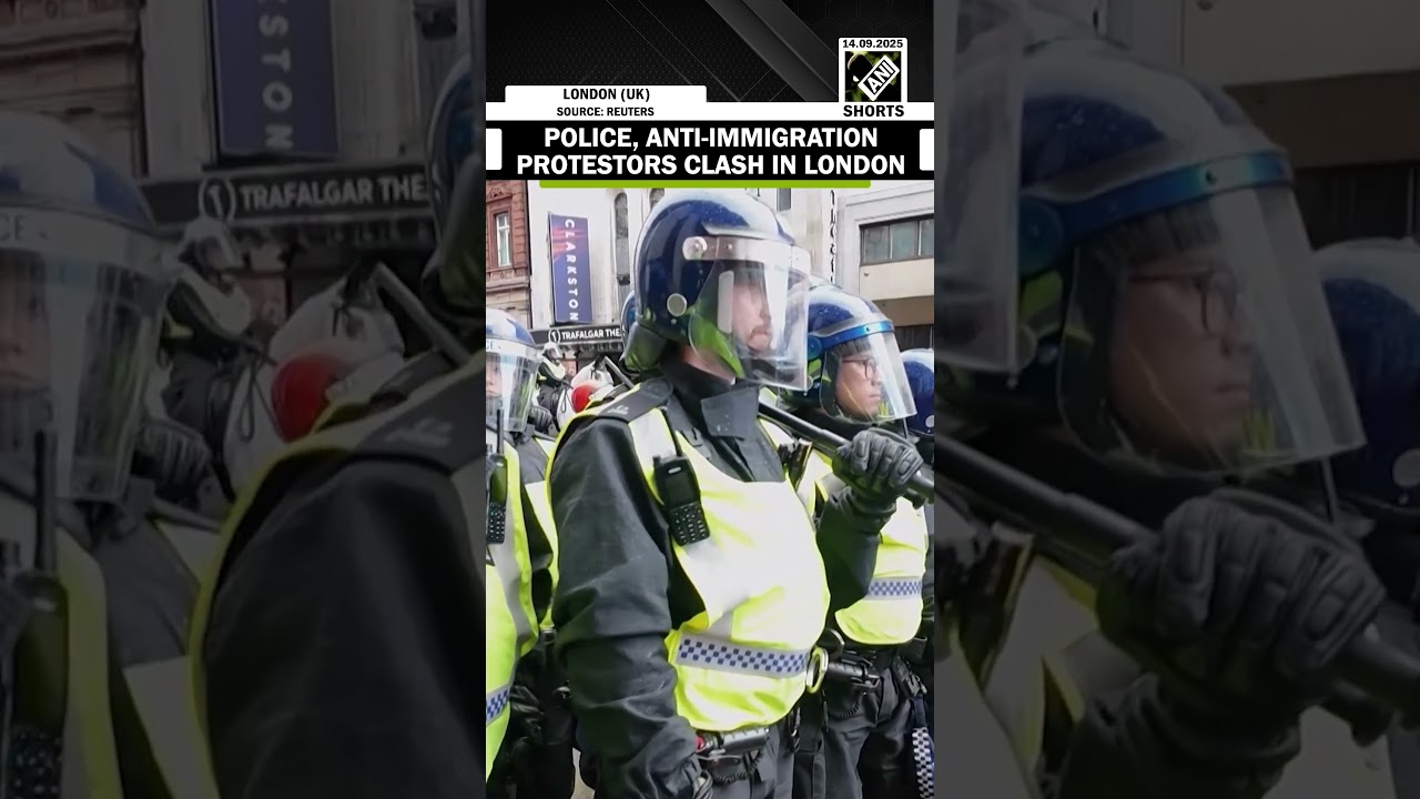 #ANINews Police and anti-immigration protesters clash in London