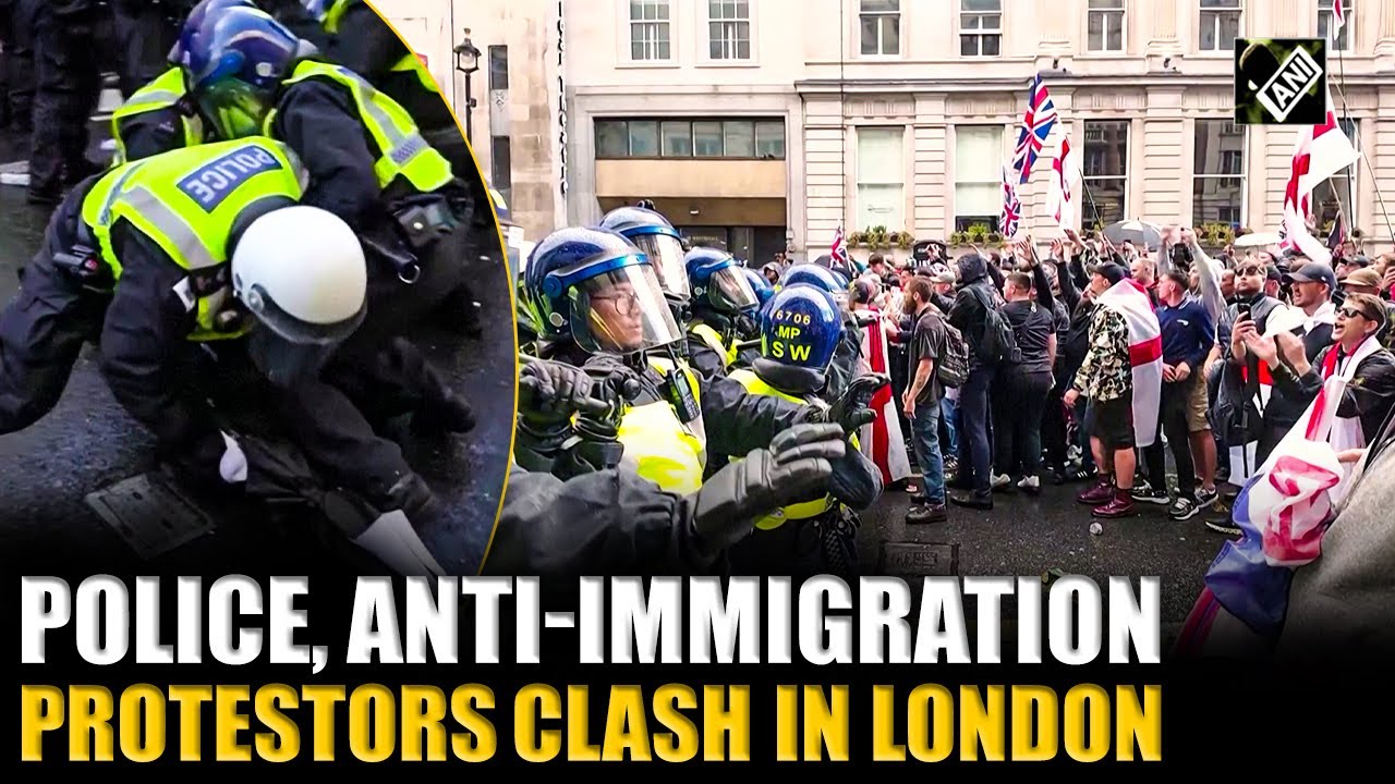 #ANINews Police and anti-immigration protesters clash in London