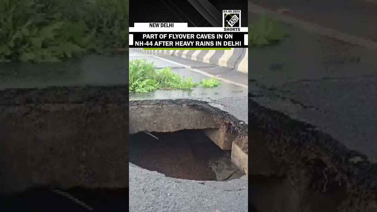 #ANINews Portion of NH-44 flyover caves in near Delhi’s Alipur after heavy rains
