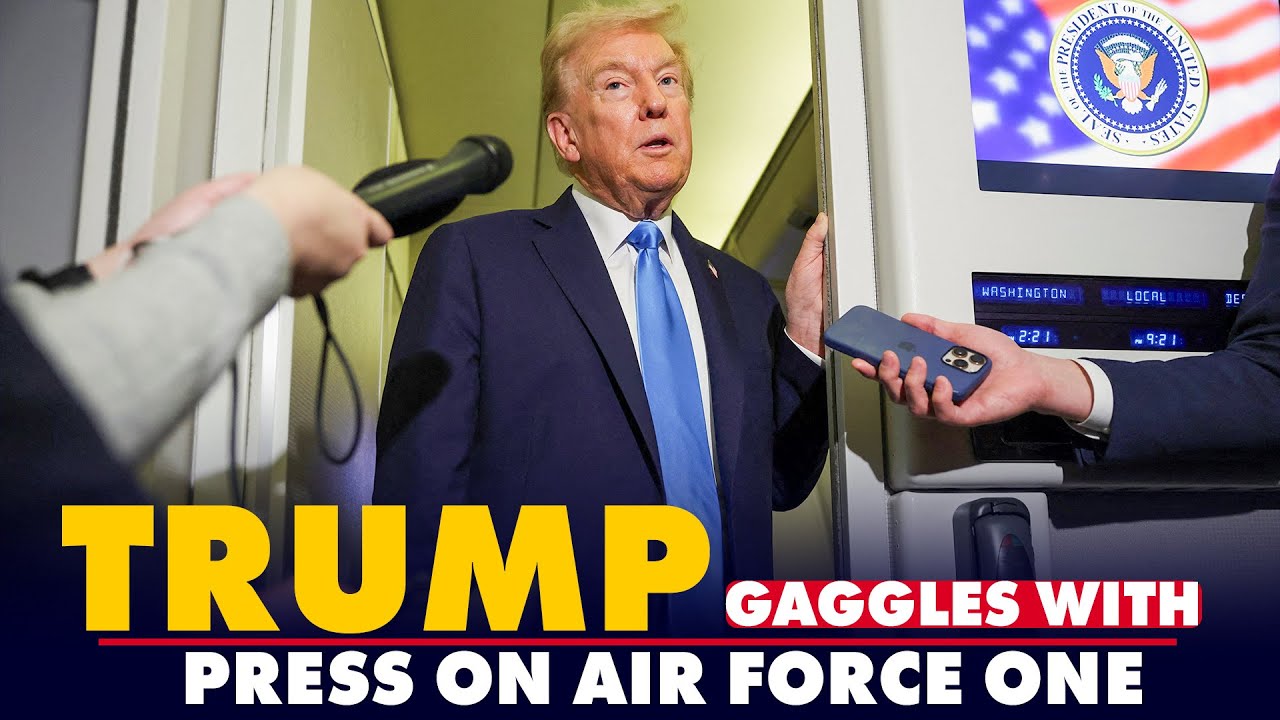 President Trump Gaggles with Press on Air Force One in Qatar | India| Putin | Hamas | Canada