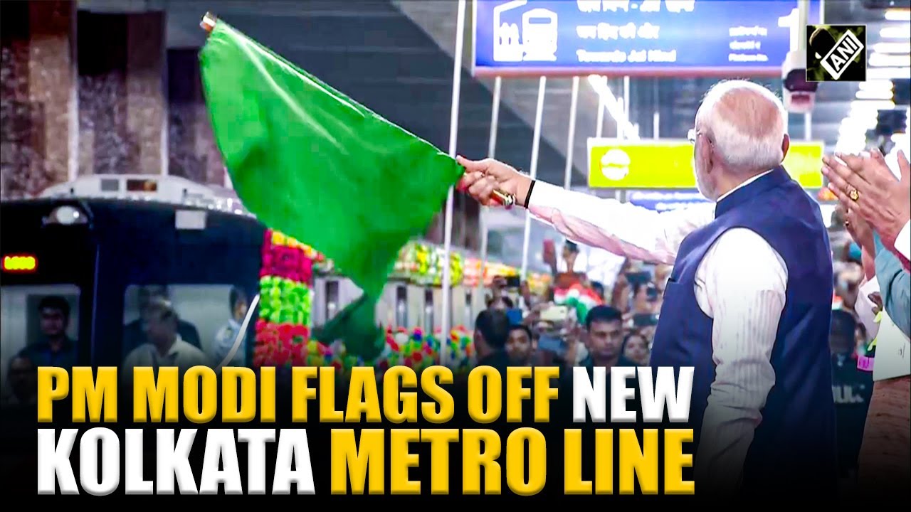 #ANINews Prime Minister Modi flags off new Kolkata metro line at Jessore Road during West Bengal visit