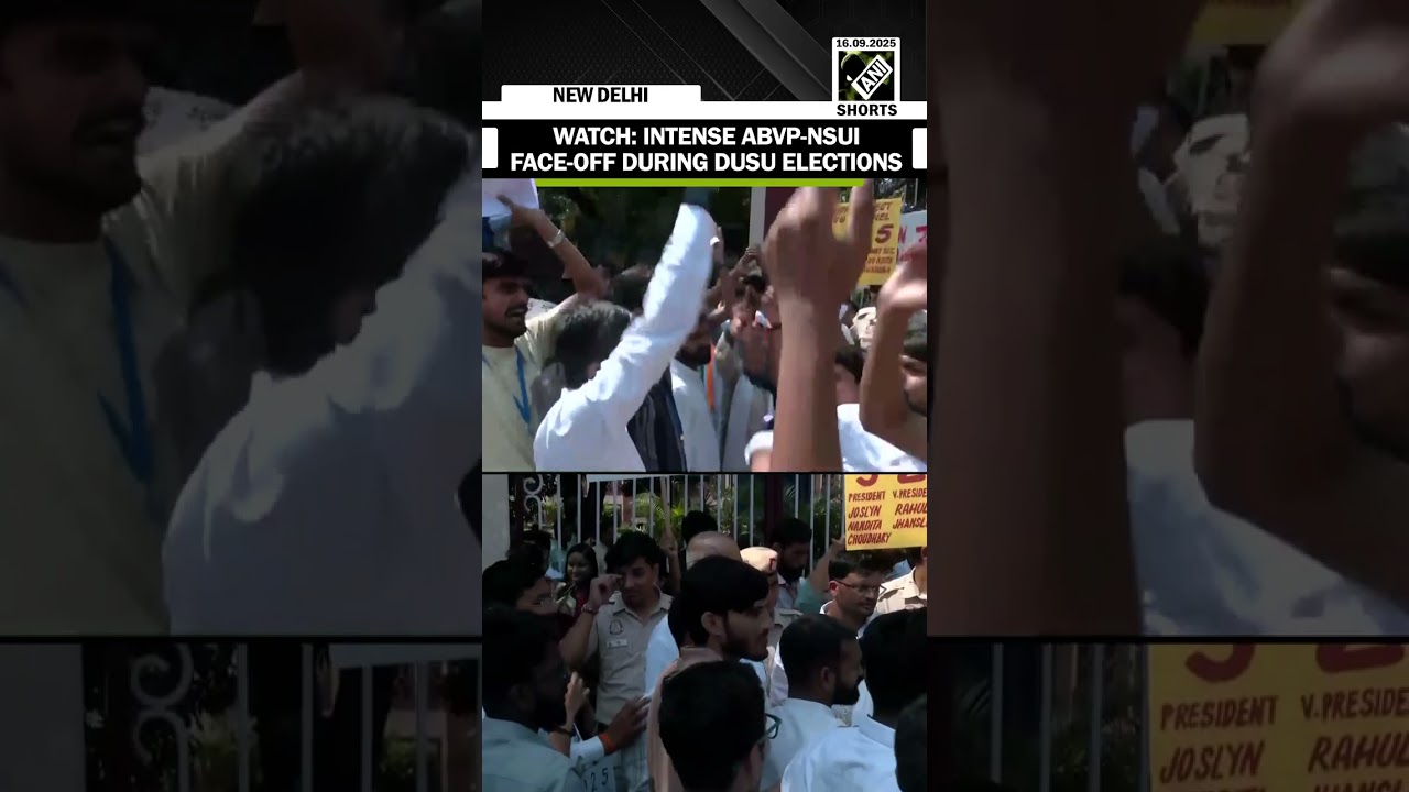 #ANINews Ruckus breaks out between ABVP, NSUI outside Kirori Mal college during DUSU poll campaign
