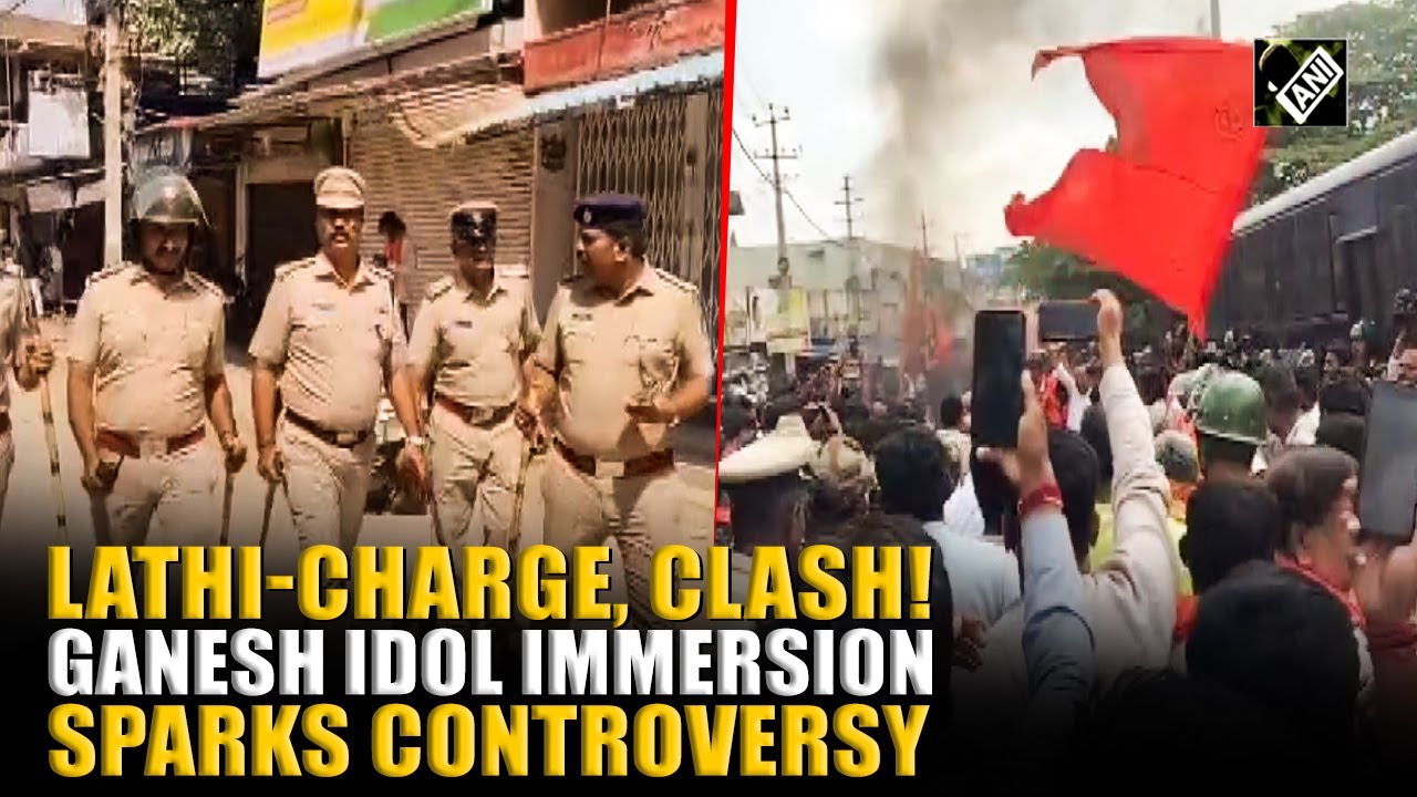#ANINews Stone-pelting, lathi-charge, chaos, clash! Ganesh idol immersion sparks controversy in Mandya