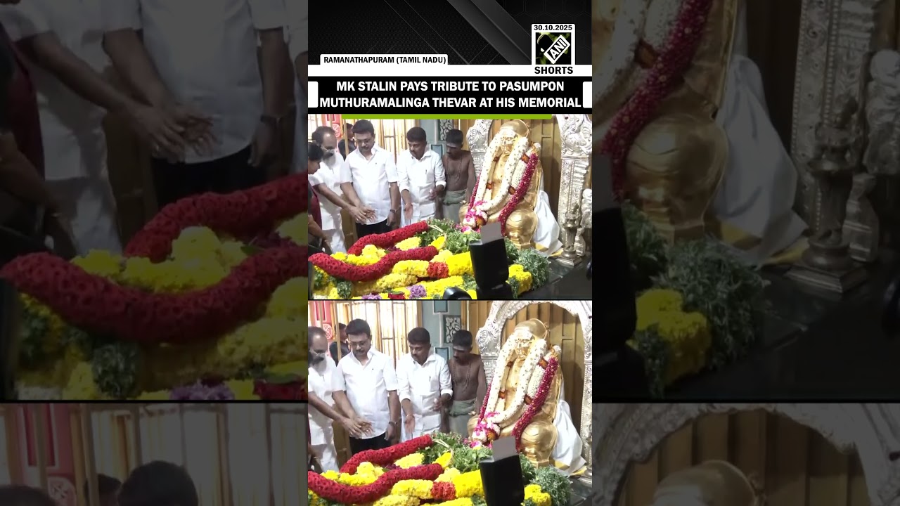 #ANINews TN CM MK Stalin pays tribute to freedom fighter Pasumpon Muthuramalinga Thevar at his memorial