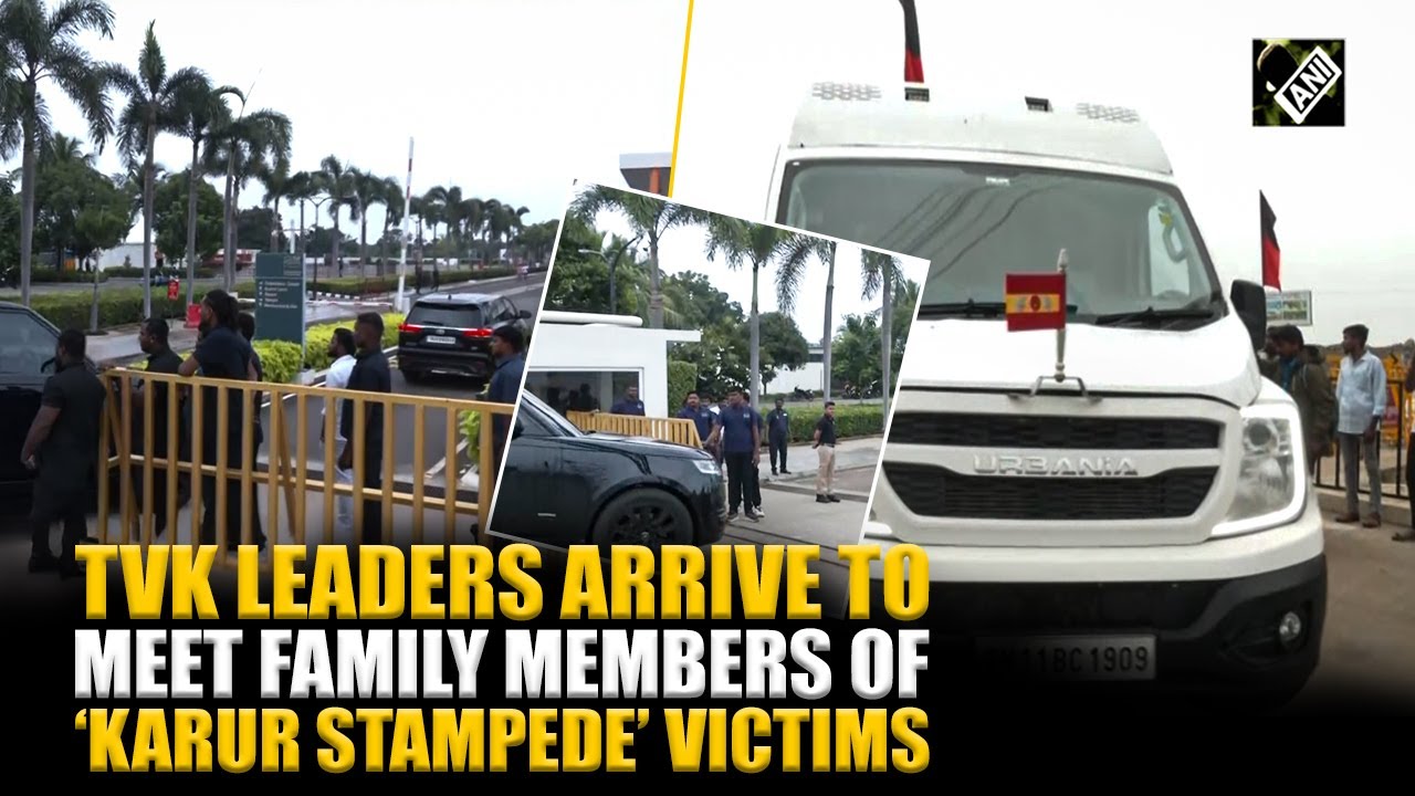 #ANINews TVK leaders arrive at hotel, Actor Vijay to meet family members of Karur stampede victims