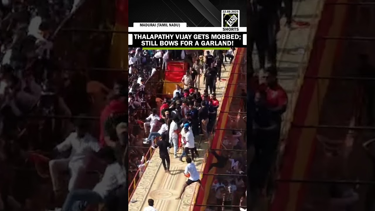 #ANINews TVK’s Madurai event turns into a fan frenzy moment, Thalapathy bows for a garland