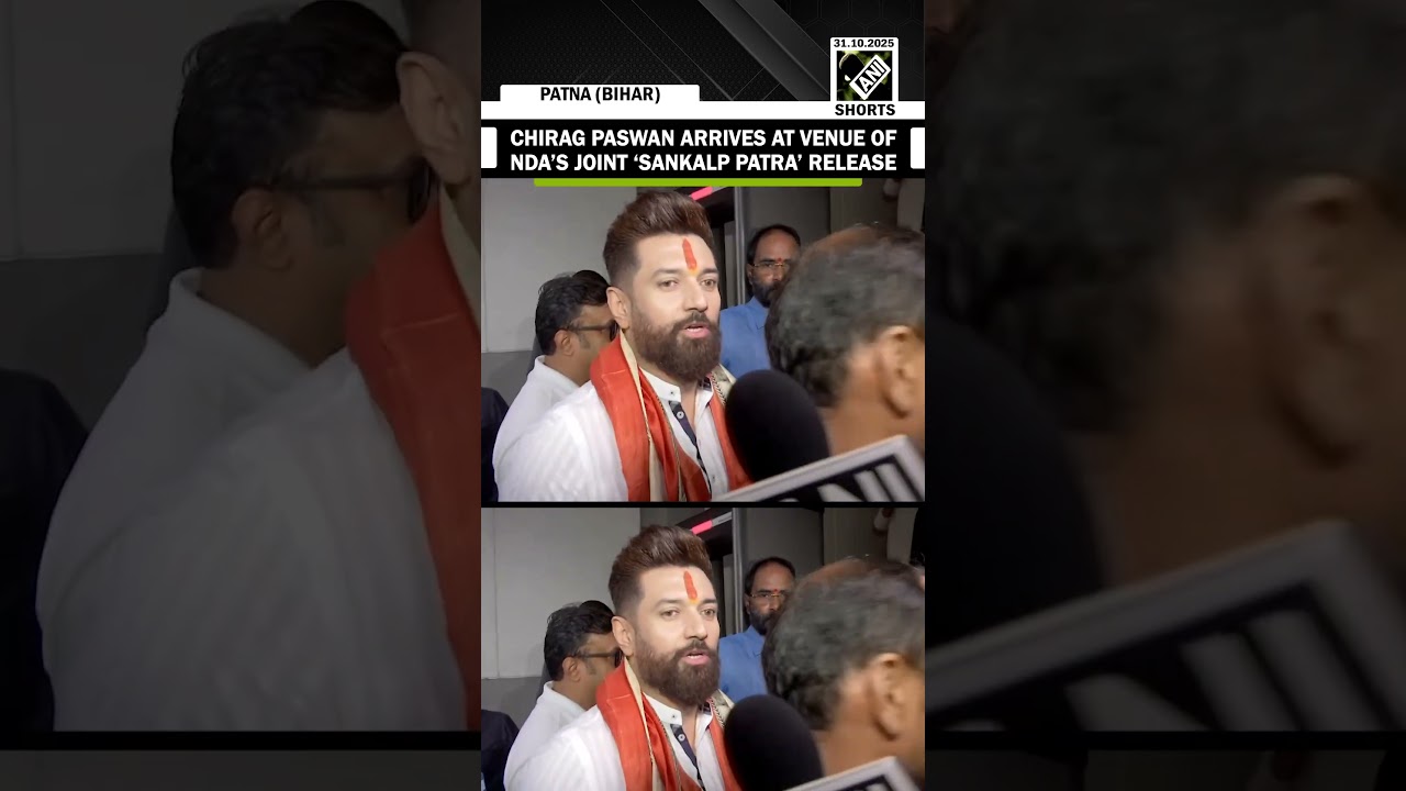 #ANINews Union Min Chirag Paswan arrives at venue of NDA’s joint ‘Sankalp Patra’ release for Bihar Election