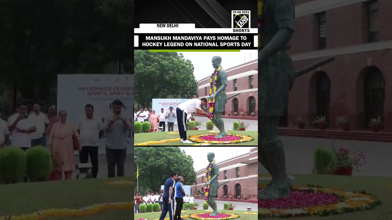 #ANINews Union Sports Min Mansukh Mandaviya pays floral tribute to Major Dhyan Chand on National Sports Day