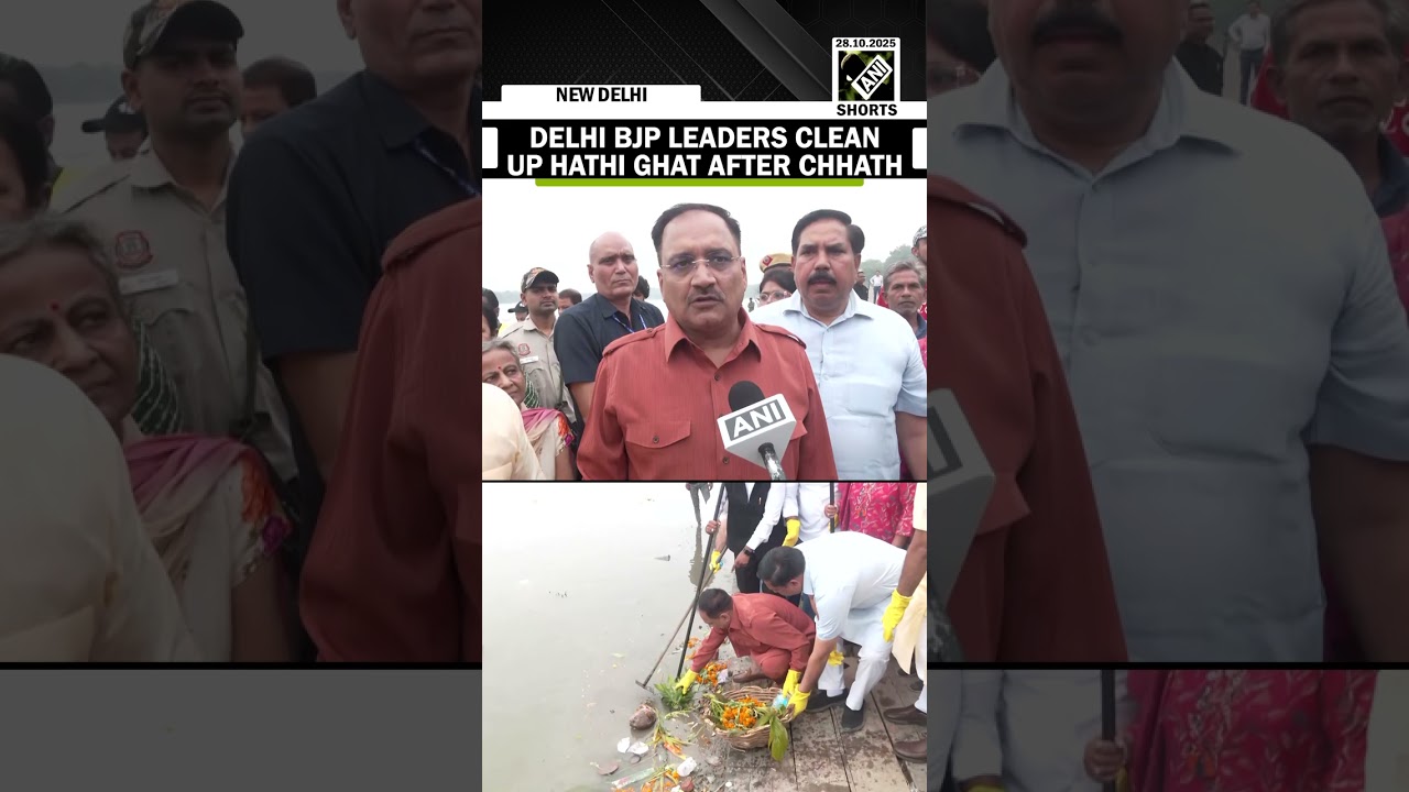 #ANINews Virendra Sachdeva, Delhi Mayor, Parvesh Verma begin Hathi Ghat clean up after Chhath celebration
