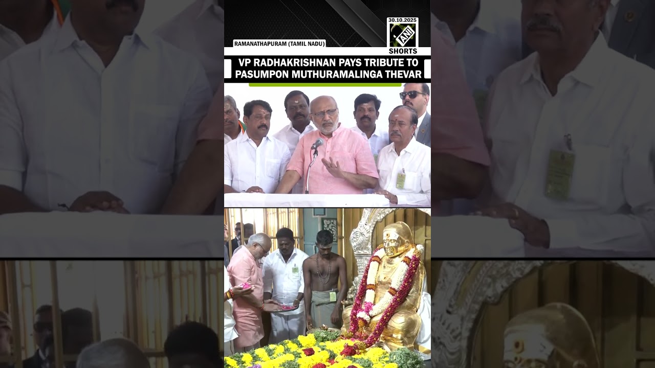 #ANINews VP C P Radhakrishnan pays ṭribute to freedom fighter Pasumpon Muthuramalinga Thevar in Pasumpon