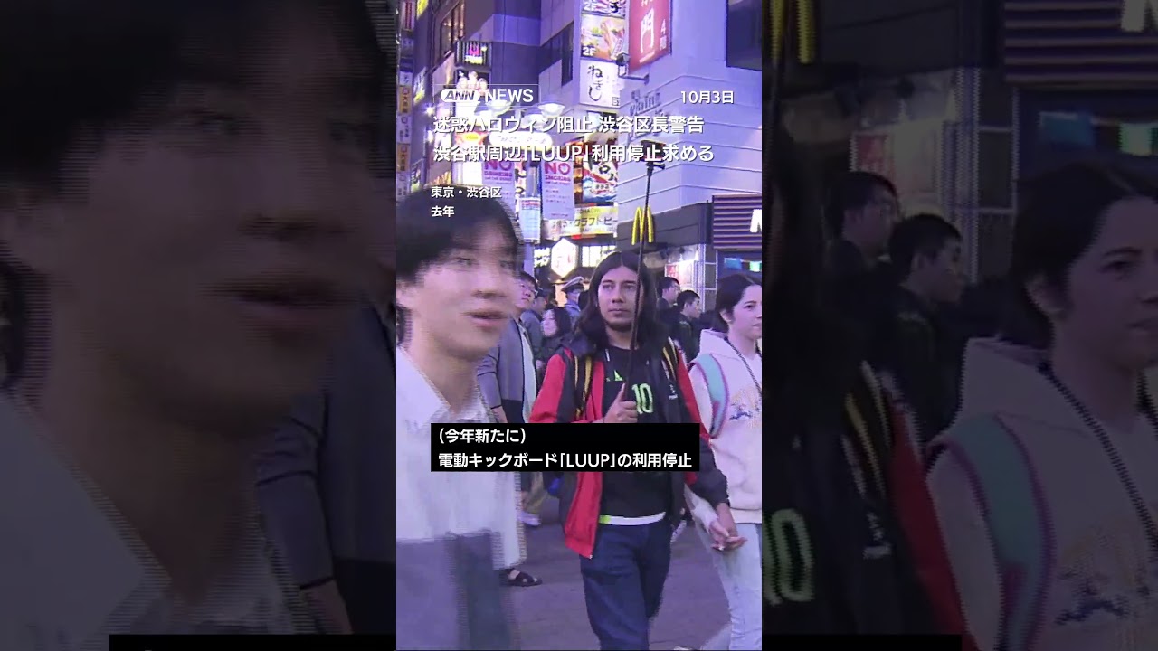 #ANNnews 「迷惑ハロウィン阻止」渋谷区長が警告 渋谷駅周辺「LUUP」利用停止求める #shorts