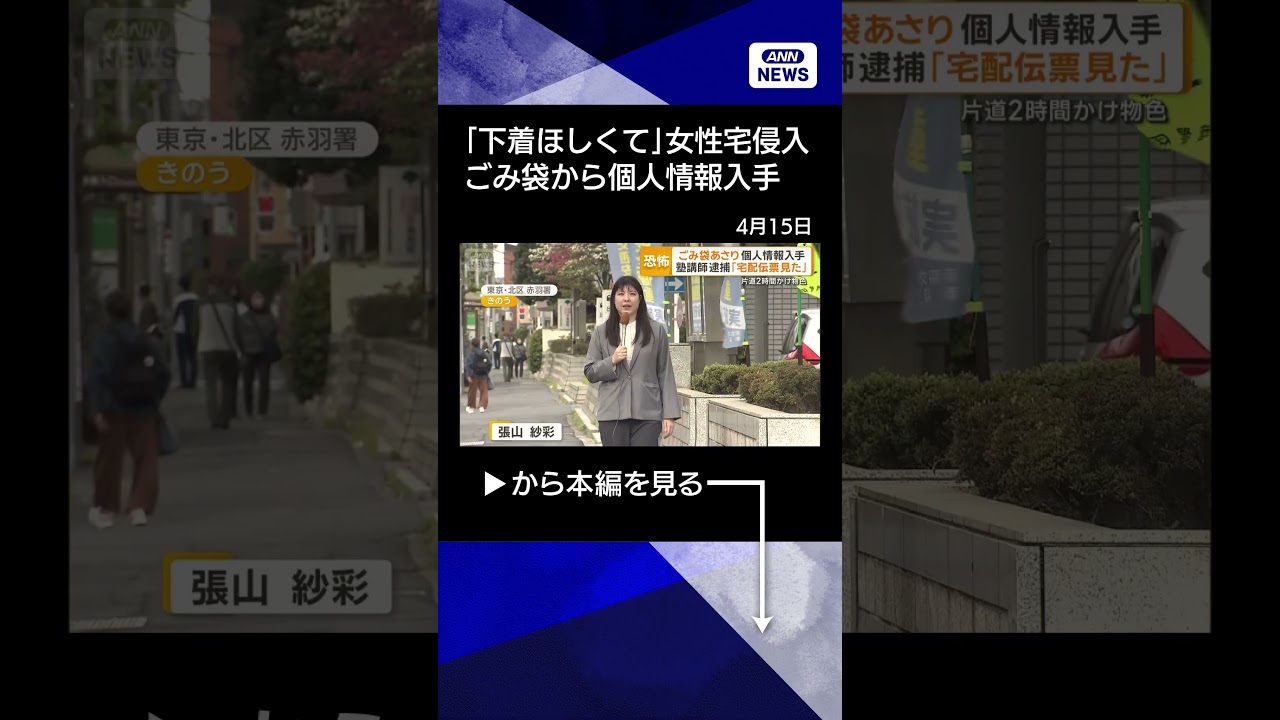 #ANNnews 【ニュース】「下着ほしくて」女性宅侵入 ごみ袋あさり個人情報入手 片道2時間かけ…塾講師逮捕 #shorts