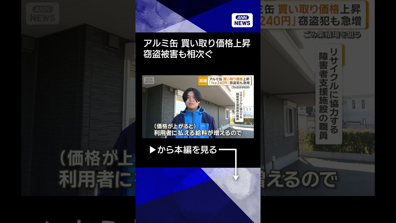 #ANNnews 【ニュース】アルミ高騰 缶の買い取り価格上昇で業者への持ち込み増える 窃盗被害も相次ぐ #shorts