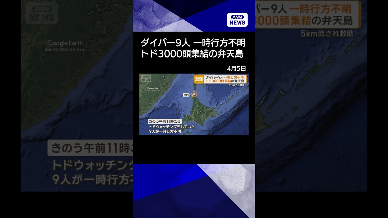 #ANNnews 【ニュース】トドウォッチングのダイバー9人が一時行方不明 北海道・弁天島付近 5キロ先で救助 #shorts