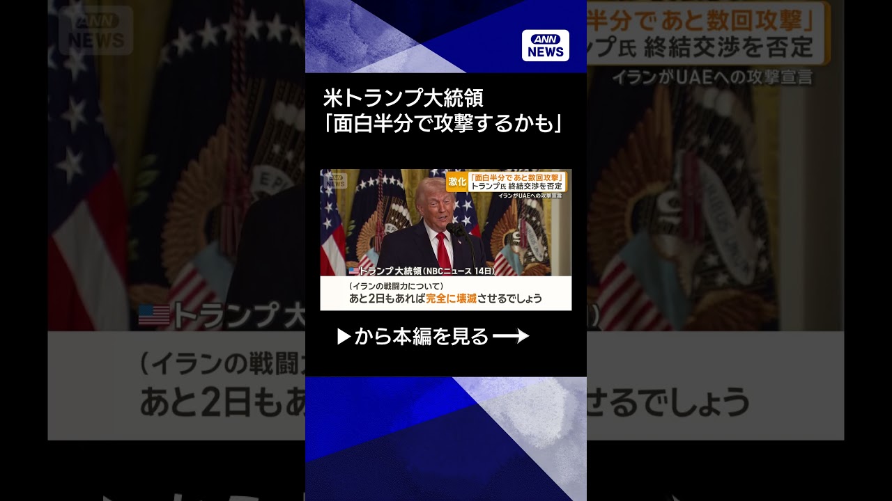 #ANNnews 【ニュース】トランプ大統領がイラン挑発「面白半分であと数回攻撃するかも」 終結交渉にも否定的 #shorts