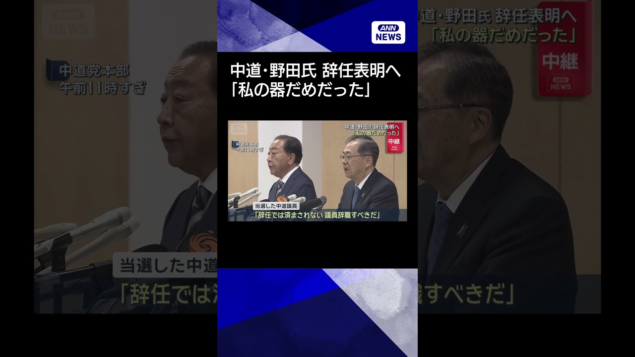 #ANNnews 【ニュース】中道・野田氏「私の器はだめだった」 午後に辞任表明へ#shorts