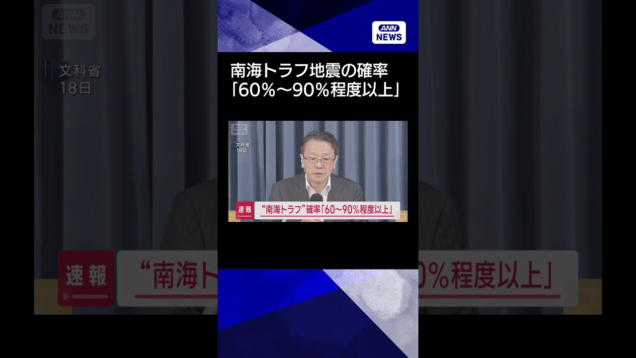 #ANNnews 【ニュース】今後30年以内の南海トラフ地震の発生確率「60%〜90%程度以上」に見直し 地震調査委 #shorts