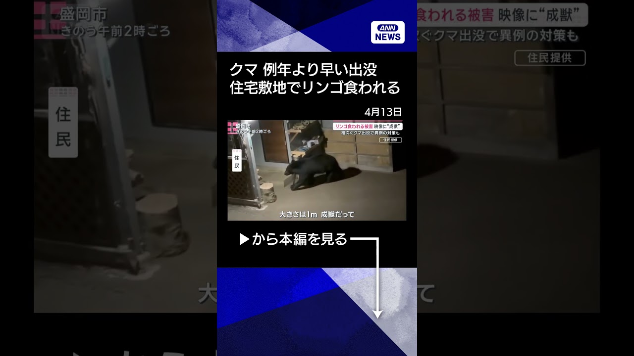 #ANNnews 【ニュース】住宅の倉庫にクマ リンゴ食われる被害 “出没5倍”異常事態に猟友会も始動#shorts