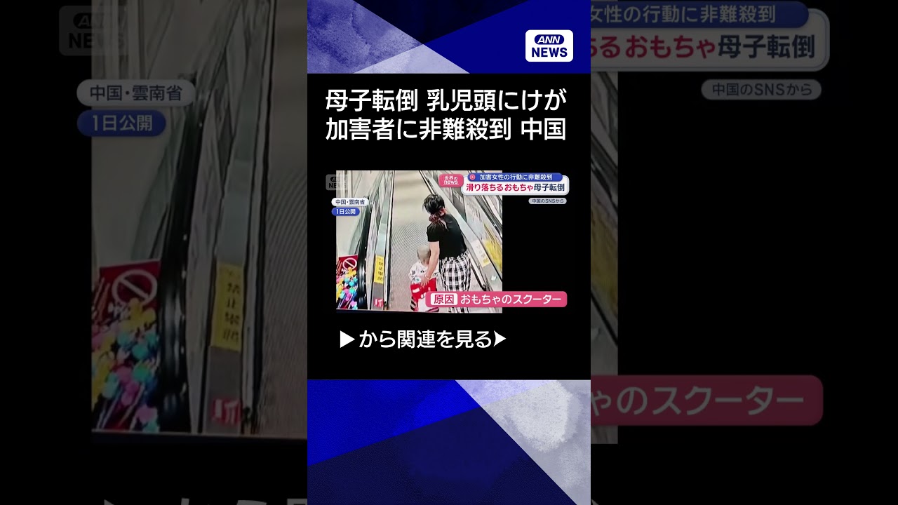 #ANNnews 【ニュース】加害女性の行動に非難殺到 滑り落ちるおもちゃ 母子転倒 中国【スーパーJチャンネル】(2026年3月6日) #shorts