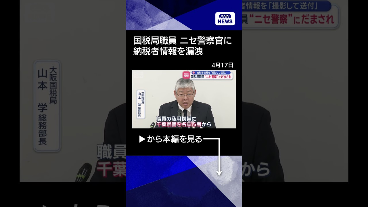 #ANNnews 【ニュース】国税局職員“ニセ警察官”に騙され…納税者情報“漏洩”謝罪 #shorts