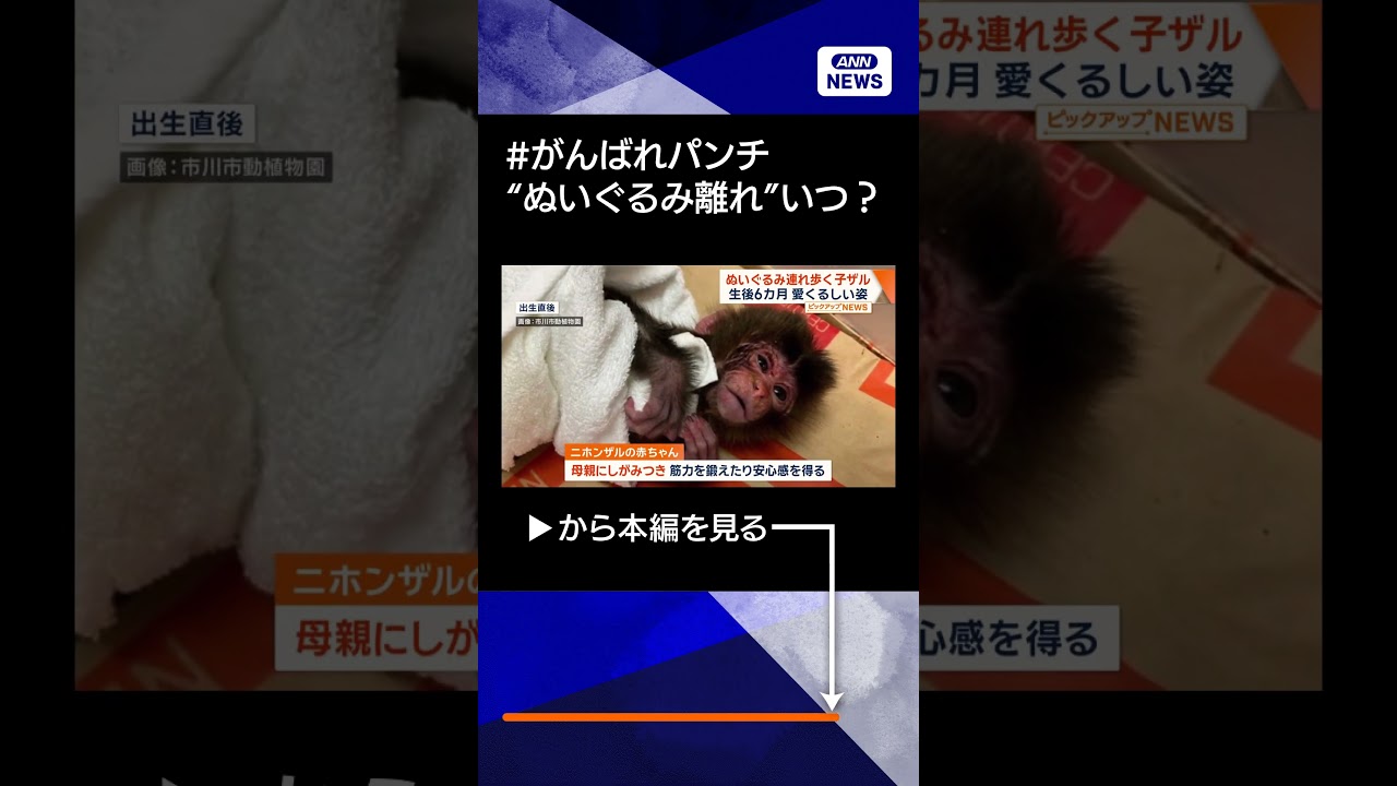 #ANNnews 【ニュース】子ザル「パンチ」SNSで話題に オランウータンのぬいぐるみ連れ歩く 大切なぬくもり#shorts