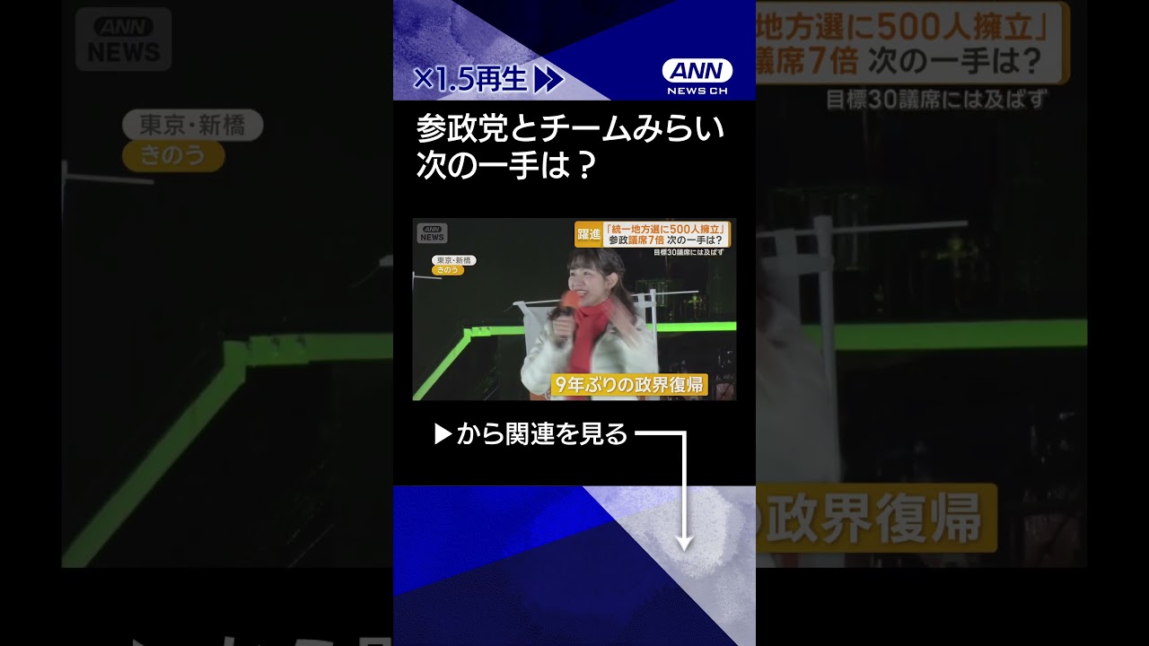 #ANNnews 【ニュース】次の一手は? 参政「統一地方選に500人擁立」 みらい「消費減税に反対を主張」#shorts