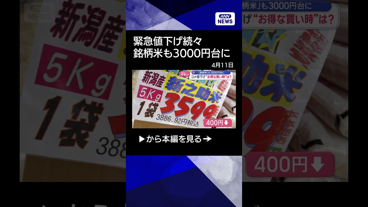 #ANNnews 【ニュース】緊急値下げ続々“お得な買い時”いつ? 銘柄米も3000円台に【スーパーJチャンネル】(2026年4月10日) #shorts