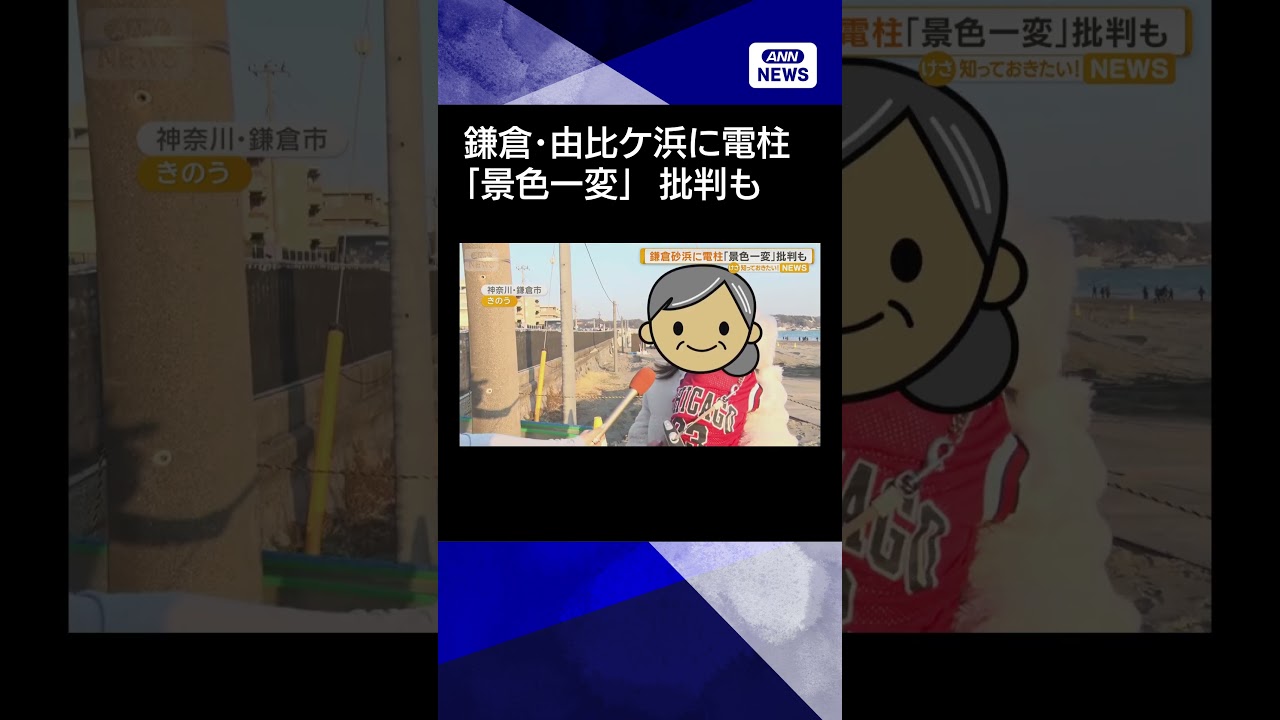 #ANNnews 【ニュース】鎌倉・由比ケ浜海岸に市が電柱設置 「景色一変した」一部住民が批判 #shorts